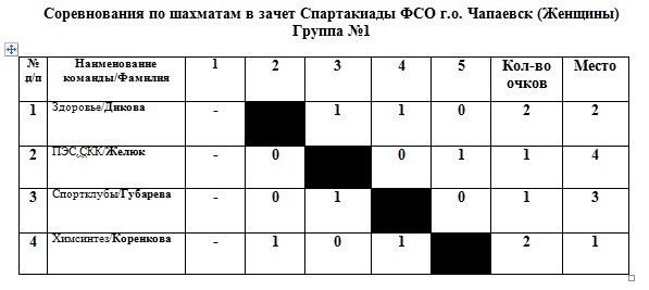 СПОРТИВНЫЙ ПОРТАЛ ЧАПАЕВСКА » Протоколы проведенных мероприятий » Протоколы соревнований по шахматам в зачет Спартакиады ФСО г.о. Чапаевск в 2017-2018г. 31 января с/з "Старт"